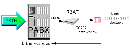 Do modemu łącze szeregowe podłączone kablem (8 żyłowym). Modem