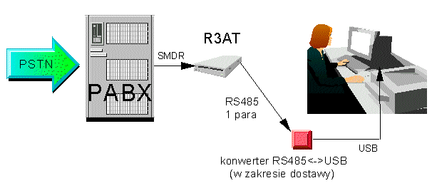 telefoniczna), blisko komputera umieszczony jest konwerter RS485